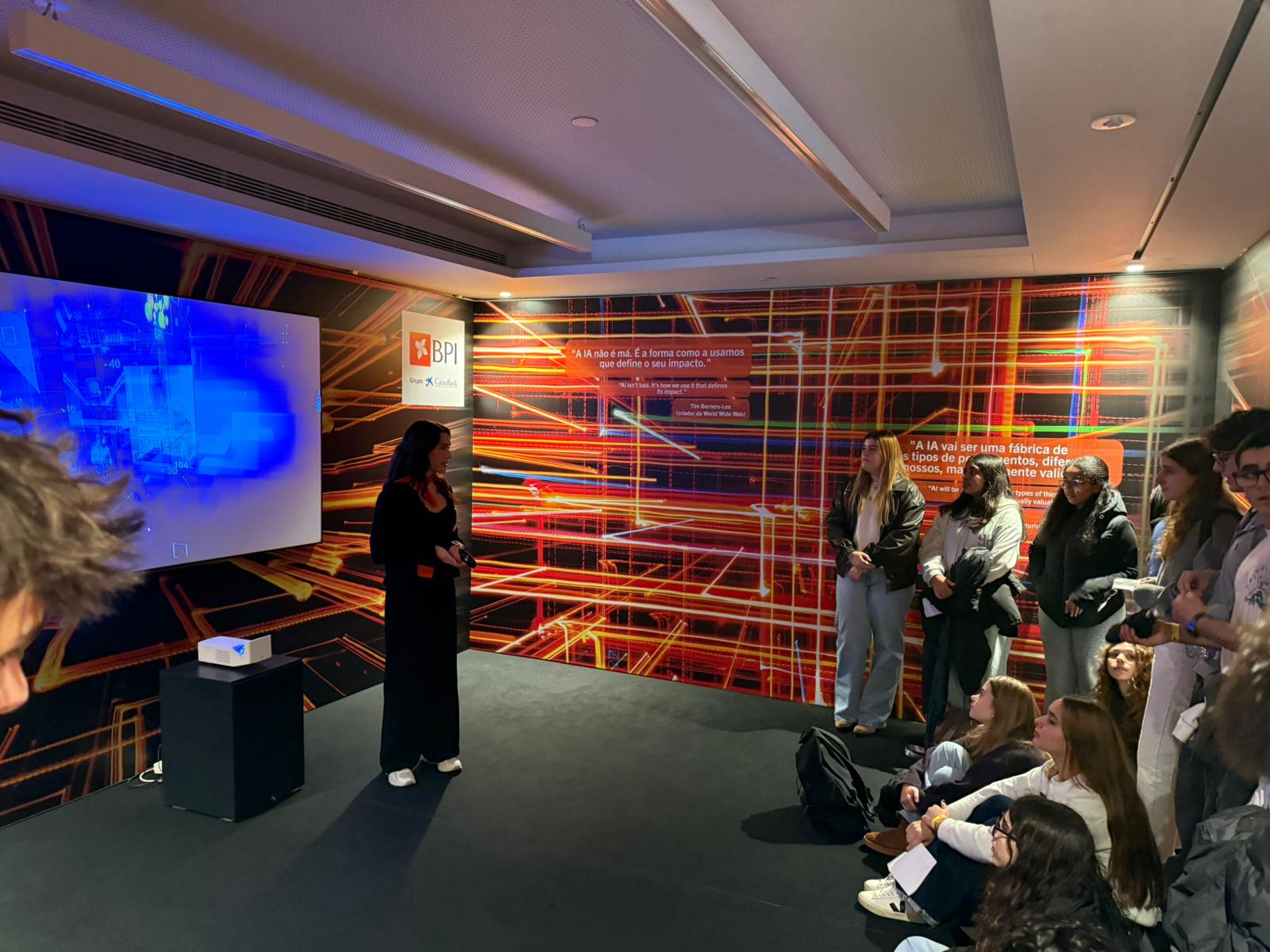 Durante a visita, os alunos exploraram diferentes pontos interativos da exposição, experimentando equipamentos, colocando questões e refletindo sobre o impacto que estas tecnologias têm, e continuarão a ter, na sociedade e nas profissões do futuro. A participação entusiasta e a curiosidade demonstrada revelaram o interesse crescente dos jovens por áreas ligadas à inovação tecnológica.