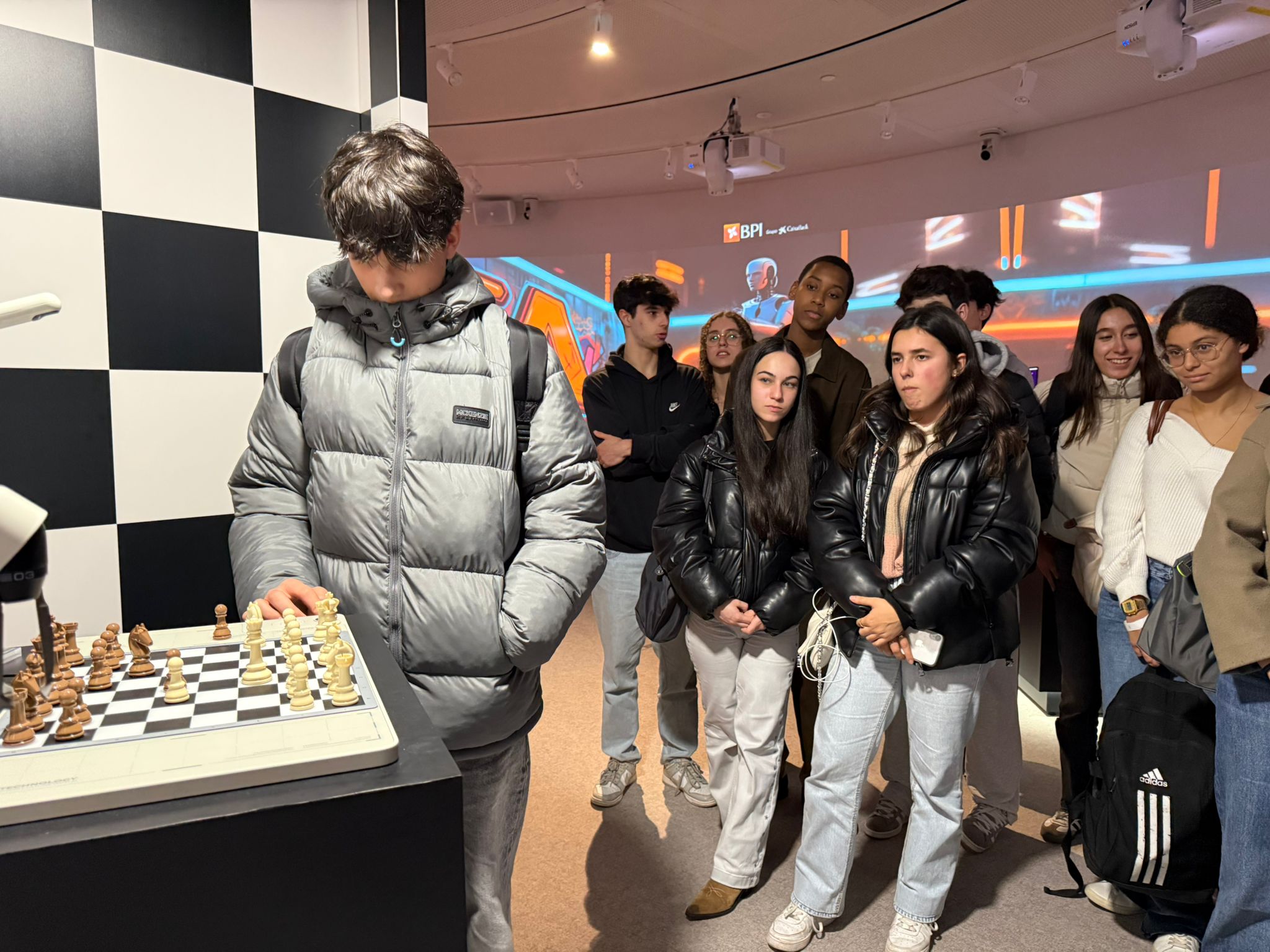 O Instituto de Ciências Educativas continua a promover experiências educativas que aproximam os alunos das tecnologias emergentes e das competências do futuro. Desta vez, os estudantes do 10.º ano da nossa Escola participaram na visita à exposição “Robôs no BPI All in One”, um espaço totalmente dedicado à Inteligência Artificial e Robótica, onde puderam contactar com aplicações reais que já fazem parte do quotidiano.
